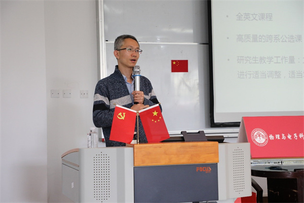 学院副院长徐敏从一流专业申报、全国部分地区大学生物理竞赛、拔尖学生培养、本科教学工作量调整、2018级毕业论文题目征集、公开课活动、困难学生帮扶等方面进行通报。