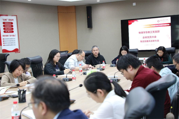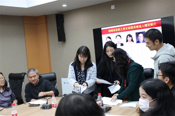 集中学习后,物理学系教工党支部全体党员在物理楼三楼多功能厅开展交流研讨,并选举产生新一届支部委员会委员。支部25位教师党员参会,物理学系教工党支部书记杨洋主持会议,学院党委书记李恺与会指导。