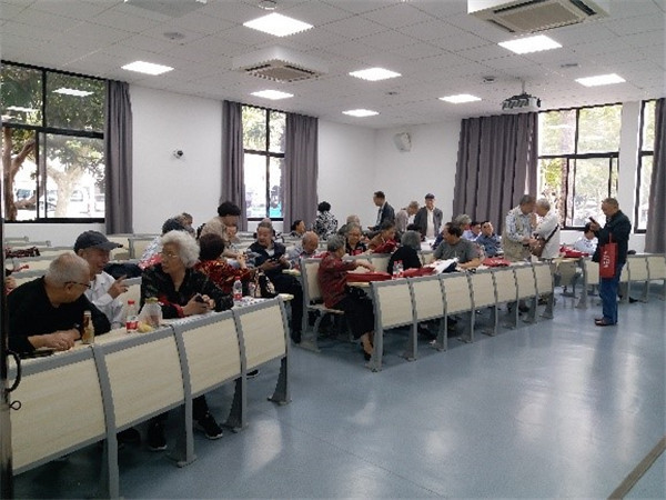 各班级校友联络人领班旗,在校园里与同学、老师们拍照留念。在学校的集中欢迎仪式之后,返校校友来到曾经的教室齐聚一堂,170位1970届校友返校庆祝毕业50周年,回忆青春岁月和点点滴滴。