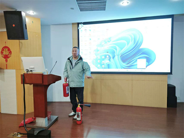张燚讲解了常用灭火器材的分类和使用方法、常见火灾起因和消防隐患,特别对室内、通道堆放杂物,电瓶车违规充电等进行提醒。张燚要求师生务必重视用电安全,做到规范用电,在面临火灾时,准确运用应急逃生方面的知识,正确自救并逃生。