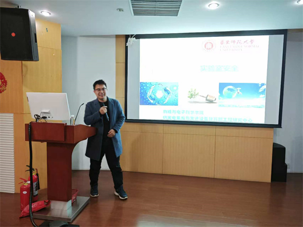 彭晖列举了近年来国内高校实验室安全事故典型案例,强调学院应遵守实验室安全守则。彭晖逐一列出入实验室的安全注意事项,重点讲解关于危化品管理和使用、用电安全、消防安全等方面的知识,系统阐述了如何在实验室保障自身安全。