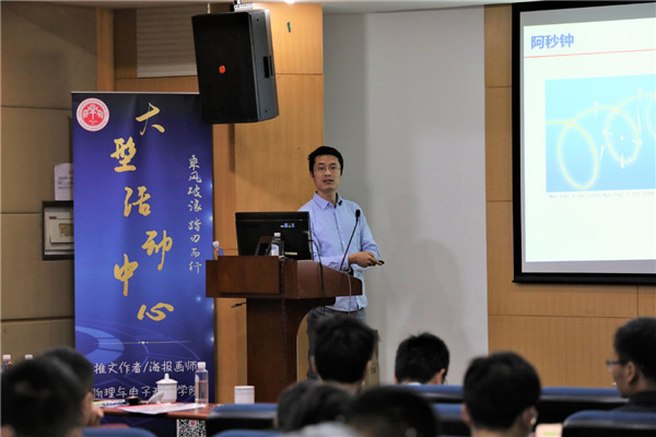 学院院长程亚作题为《今天的物理为什么重要?明天的物理是否仍会重要?》主题报告。他以“今天的物理学为什么重要?”“物理学的价值是什么?”两个问题切入,与在场师生进行交流。青年研究员袁翔表示,学物理的初衷是更好的了解这个世界,通过物理学的研究造福人类。