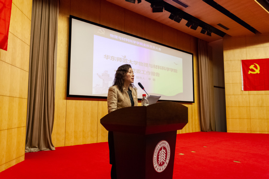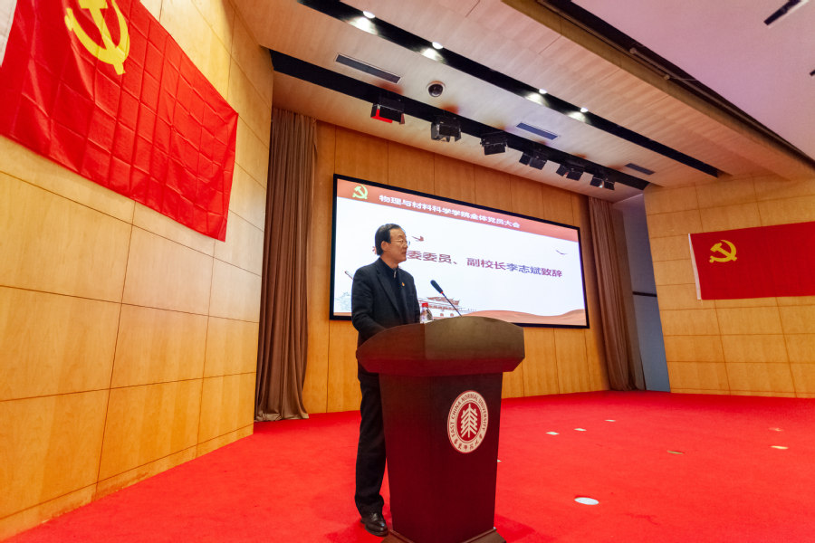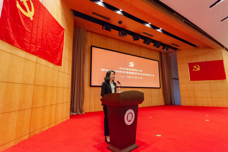 2018年12月19日下午,物理与材料科学学院在中山北路校区科学会堂召开全体党员大会选举产生物理与材料科学学院第一届党委委员。学校党委委员、副校长李志斌出席会议并致辞,会议由黄岚兰同志主持,共计329名党员同志参加了本次会议。