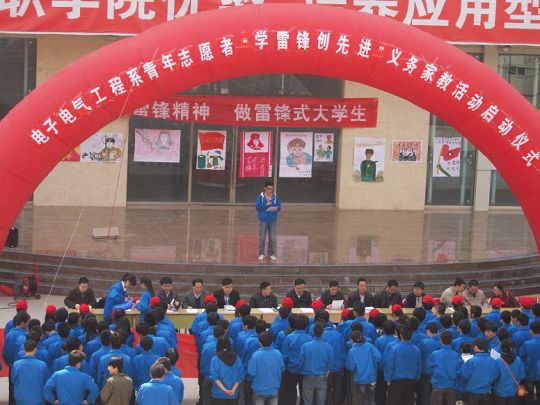 为了将此项活动引向深入,电子电气工程系在学院东区礼堂前举行了“学雷锋创先进”青年志愿者义务家教活动启动仪式。系领导、辅导员、全体班主任、团总支学生会全体成员及2011级、2010级党员、入党积极分子参加了启动仪式。在启动仪式上,系党总支书记马应魁要求同学们继续发扬和学习雷锋艰苦奋斗精神、螺丝帽精神、螺丝钉精神,学雷锋永不过时,要从身边做起,从点滴做起,把这种精神永远传扬下去。接着,志愿者们承诺在今后的“学雷锋创先进”青年志愿者义务家教活动中,秉承奉献、友爱、互助、进步的志愿服务精神,努力践行求实、创新的精神。随后,系副主任张军强调,青年志愿者义务家教活动需要一个漫长的过程,要把推广爱心传播作为出发点,把友爱、互助的信息传递给社区孩子们,给他们带去知识,拓展他们的视野。要不断的坚持下去,把这项工作越做越好。并表示电子电气工程系将会一如既往的支持学雷锋创先进这项义务支教服务行动,将此项工作引向深入,建立长效机制,切实为关爱社区孩子做出实实在在的工作。