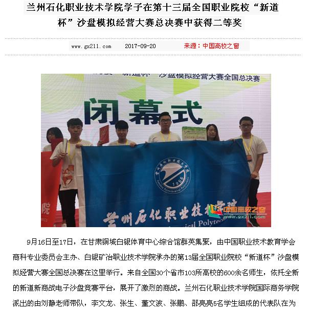 【中国高校之窗】兰州石化职业技术学院学子在第十三届全国职业院校“新道杯”沙盘模拟经营大赛总决赛中获得二等奖