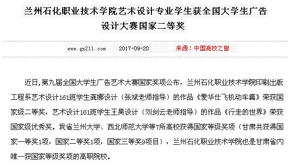 【中国高校之窗】兰州石化职业技术学院艺术设计专业学生获全国大学生广告设计大赛国家二等奖