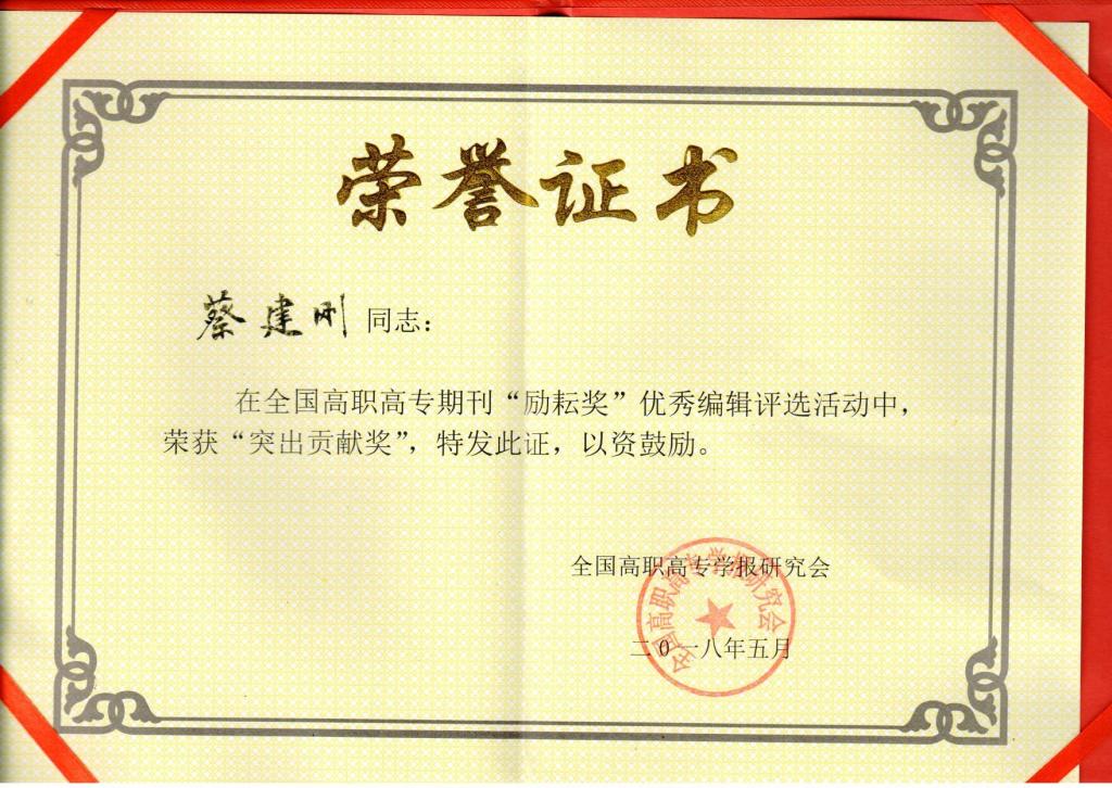 会议同时举行了全国高职高专期刊“励耘奖”优秀编辑评选活动,并对获奖者进行了颁奖。威尼斯学报蔡建刚教授荣获全国高职高专学报研究会颁发的“突出贡献奖”。
