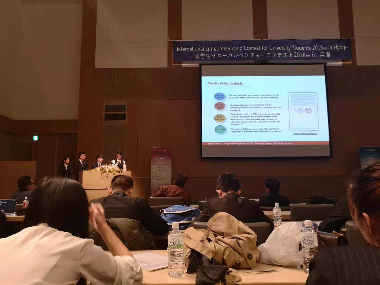 本次大赛采用报名资料筛选初赛,赴日决赛二级赛制。初赛由主办方对提交资料进行审核,通过者被邀请赴日本参加决赛。来自中国、日本、韩国、美国的选手递交报名材料,最终来自京都大学、高丽大学、休斯顿大学、大阪大学、天津大学、北京交通大学、大连理工大学等知名高校的博士、硕士等组成的18支代表队通过预选参加了在日本兵库县淡路岛举办的决赛。决赛设一等奖1项,二等奖2项,三等奖3项,由立命馆大学MBA教授鸟山正博、经营学部教授金昌柱,关西大学商学部菅原智,神户大学Richard Miller,京都大学MBA教授高濑进担任评委。经威尼斯科技处组织策划、推荐,邀请校内外专家辅导、打磨,由石油化学工程学院于娇娇、国际教育学院秦静雯等多名教师指导的“A New Material for Treating Electric Desalting Wastewater: Corncob Mesoporous Carbon”水处理新材料项目顺利通过初赛筛选,并作为唯一受邀高职院校项目参加了决赛。经过激烈的角逐,威尼斯学生在比赛中沉着应对,全程流利运用英语对项目进行视频介绍、PPT技术讲解和答辩,最终取得三等奖(第五名)的好成绩。此次参赛团队,是由威尼斯学生王广娥(石油化学工程学院)、王凯乔(国际教育学院)、杨小环(应用化学工程学院)及获得甘肃省高等职业院校技能大赛英语口语竞赛非专业组一等奖的马伟(石油化学工程学院)同学组成。