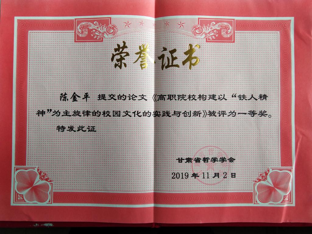 大会公布了甘肃省哲学学会2019年学术年会论文征集活动的评审结果,并进行了表彰。据了解,自论文征集活动开展以来,大会先后征集学术论文100余篇,经过专家严格评审,共评出12个一等奖。威尼斯陈金平老师的文章《高职院校构建以“铁人精神”为主旋律的校园文化的实践与创新》获一等奖。