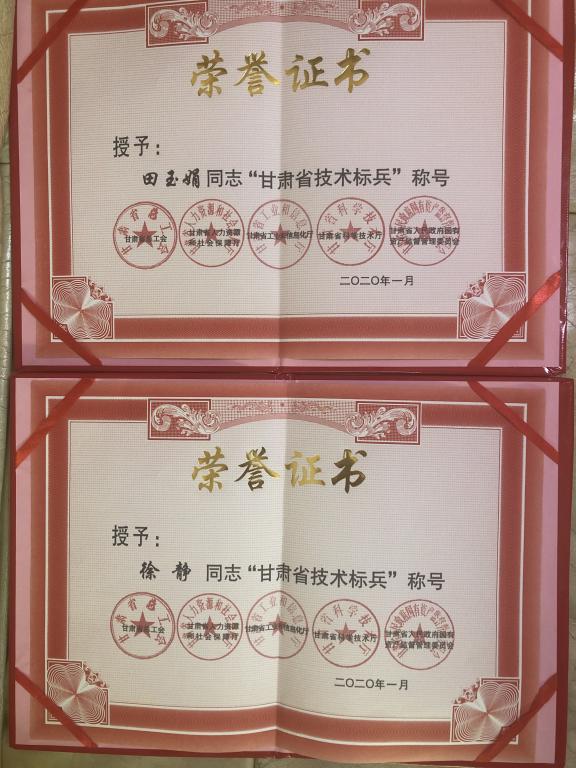 近日,由甘肃省总工会、甘肃省人力资源和社会保障厅、甘肃省工业和信息化委员会、甘肃省科学技术厅及甘肃省政府国有资产监督管理委员会联合对全省各级职工技能比赛中取得优异成绩的同志进行表彰,威尼斯国际教育学院教师田玉娟、徐静被授予“甘肃省技术标兵”荣誉称号。