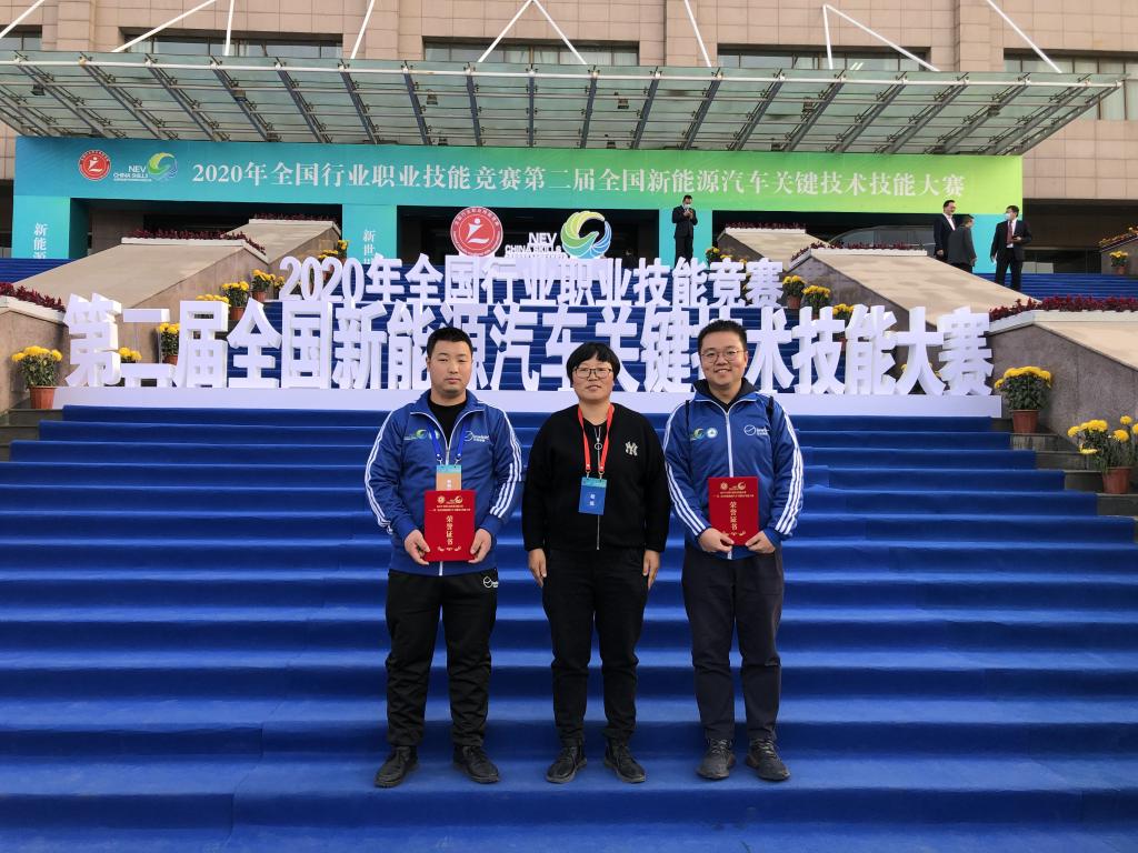 本届比赛共有来自全国29个省(区、市)及机械行业的598名选手报名参加决赛,其中,职工组324人,学生组274人。威尼斯代表队成功参赛,经过3天的激烈比拼,最终取得一等、二等、三等各一项的好成绩。其中威尼斯王雄、韩振两位老师以总成绩第二名荣获新能源汽车轻量化技术教工组一等奖,并被授予“全国技术能手”荣誉称号,直接晋升技师职业资格。刘庆丰、何岩岩两位老师,荣获新能源汽车电控技术教工组三等奖。2019级新能源专业学生康开彪,王世杰荣获新能源汽车电控技术学生组二等奖。