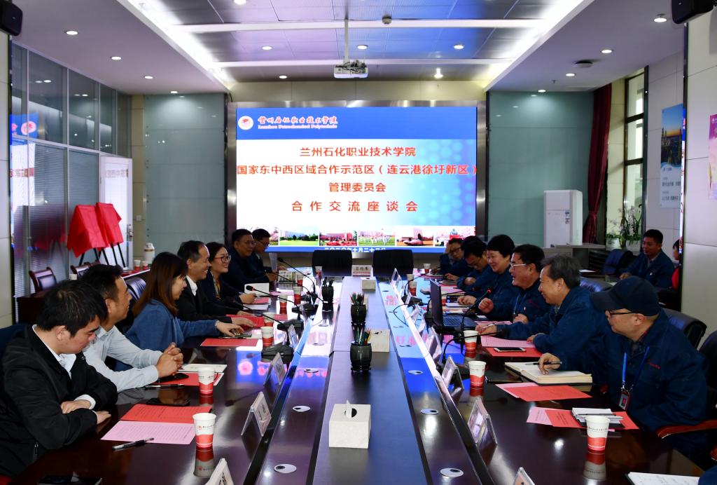 为充分发挥连云港石化基地产业优势及学校教育资源优势,推动产业学院建设进程,深化产教融合,继学校走访调研国家东中西区域合作示范区(连云港徐圩新区)不久,10月22日,连云港徐圩新区管理委员会党工委副书记、纪工委书记江行洲,党群工作部部长葛苗,文教办主任蒋笑秋以及人社局、投资促进局、方洋管理学院、连云港生物中专、兰州办事处等部门一行10人来校洽淡校政合作事宜,学校党委书记周兴中,党委副书记、校长高溥,党委副书记黄义仿,合作办学处、教务处、人事处、招生就业处、成人与职业培训学院、石油化学工程学院、应用化学工程学院、机械工程学院、电子电气工程学院等部门负责人参加了座谈,会议由黄义仿主持。