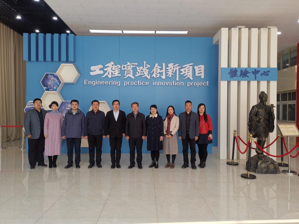 黄义仿一行在申奕带领下参观了天津渤海职业技术学院EPIP工程创新实践中心、鲁班工坊体验馆、环境与化学工程学院实训基地和经济管理学院实训基地等。