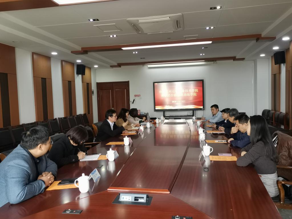 为落实天津与甘肃签订的职业教育东西协作行动计划,并推进《兰州石化职业技术学院——天津渤海职业技术学院职业院校教育协作实施方案》和协议有关工作落实落细,推动两校优势互补,资源共享,相互辐射,达到互惠共赢,相互促进,共同发展的目的, 学校党委副书记黄义仿带队,国际交流处、石油化学工程学院、国际商务学院、成人与职业培训学院一行5人赴天津渤海职业技术学院考察交流,对接落实相关工作。天津渤海职业技术学院院长于兰平,副院长申奕,外事办公室、继续教育办公室、环境与化学工程学院、经济管理学院等部门负责人热情接待黄义仿一行。