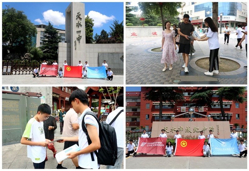 7月19日,小分队来到天水一中、天水市成纪中学、天水市中心广场进行招生宣传。天水市第一中学,位于甘肃省天水市,是甘肃省重点中学,2000年被甘肃省教育厅评定为首批省级示范性普通高中。天水市成纪中学为秦州区教育资源布局进一步优化,义务教育优质均衡发展水平进一步提升做出了重要贡献。小分队成员与各中学老师和同学进行了交流,宣讲了学校总体概况,并详细介绍了学校办学理念、师资队伍、专业设置、学科优势、专业特色、培养模式和就业优势。通过本次招生宣传,打通了招生信息互通渠道,解除了学生和家长在专业设置、师资力量和就业前景等方面的顾虑,在招生宣传方面取得了良好成效。