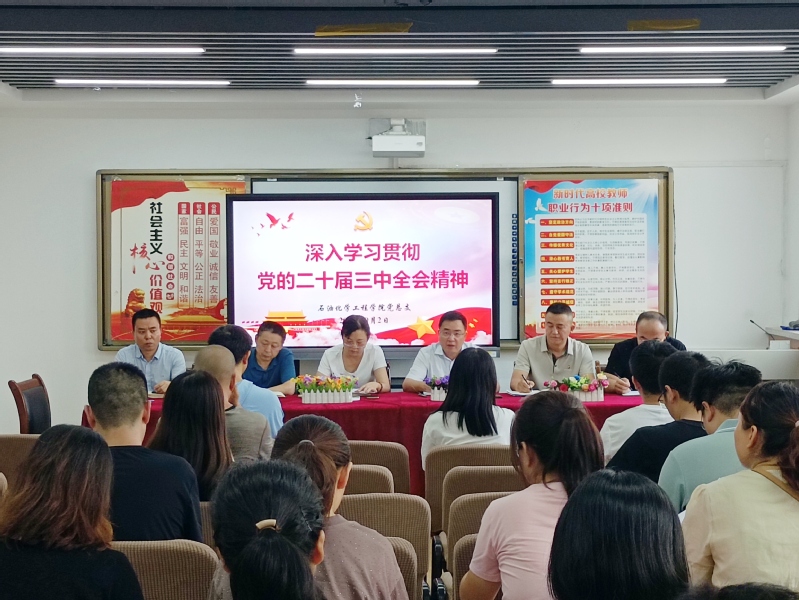 为深入学习贯彻党的二十届三中全会精神,加强师生的思想政治素质,提升教育教学质量。9月2日下午,石油化学工程学院在化工楼309召开会议,集中学习贯彻党的二十届三中全会精神,学院师生参加学习。