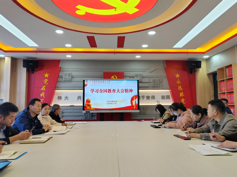 为深入学习贯彻习近平总书记重要讲话和全国教育大会精神,进一步凝聚思想共识、强化使命担当,推动党中央关于建设教育强国的重大决策部署落实落地。近日,汽车工程学院党总支组织召开“学习贯彻全国教育大会精神”专题会议,学院全体教工党员参加会议。