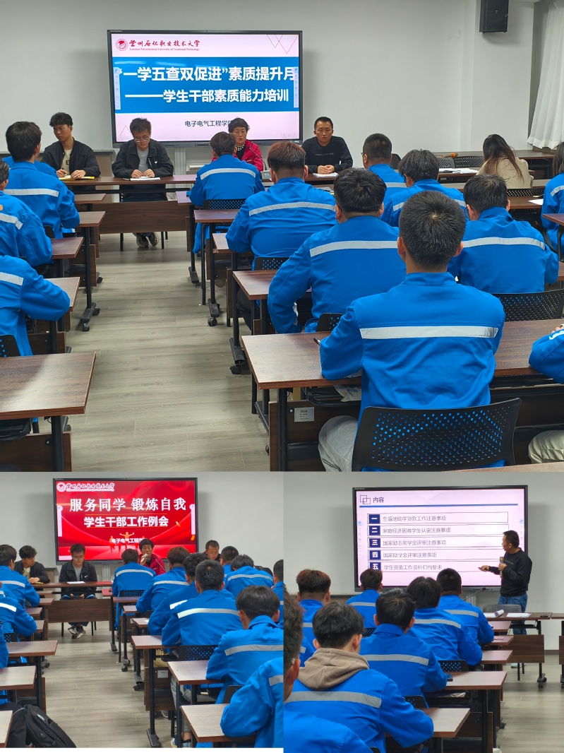 为提升学生干部的综合素质和工作能力,切实发挥学生干部在“自我管理、自我教育、自我服务”中的作用,进一步增强学院学生干部的凝聚力和战斗力。电子电气工程学院于近日组织召开了学生干部素质能力培训会。学院学生工作负责人、辅导员及学院所有学生干部参加此次培训会。会议由辅导员焦翼飞老师主持。