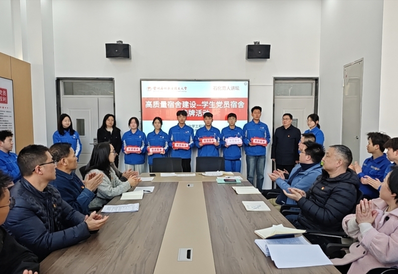 为进一步强化学生党员责任意识,充分发挥“一名党员一面旗帜、一间宿舍一个样板”的先锋模范作用,推动高质量宿舍建设活动提质增效,3月28日,石油化学工程学院在学生公寓开展“亮身份·强责任·作表率”学生党员宿舍挂牌活动。学院领导、学生党支部书记、辅导员、班主任及学生党员代表参加此次活动。
