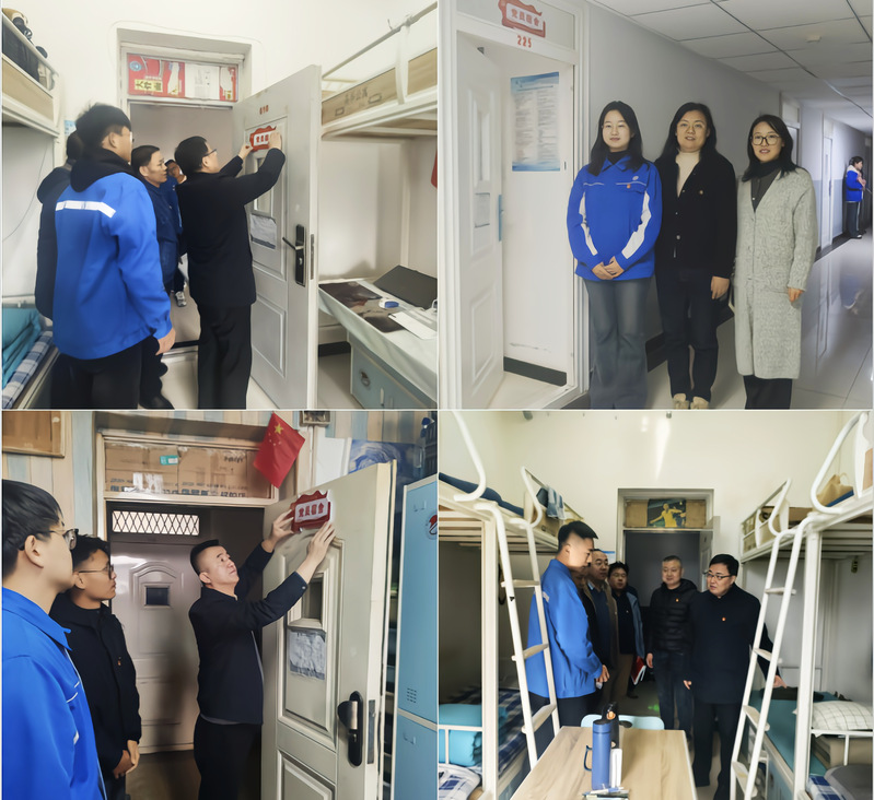 最后,学院负责人向学生党员代表授予“党员宿舍”标牌并亲自悬挂,挂牌过程中,学院领导与学生座谈交流,了解学习生活情况,听取意见建议,并检查宿舍内务、安全、文化氛围及用电违规等落实情况。