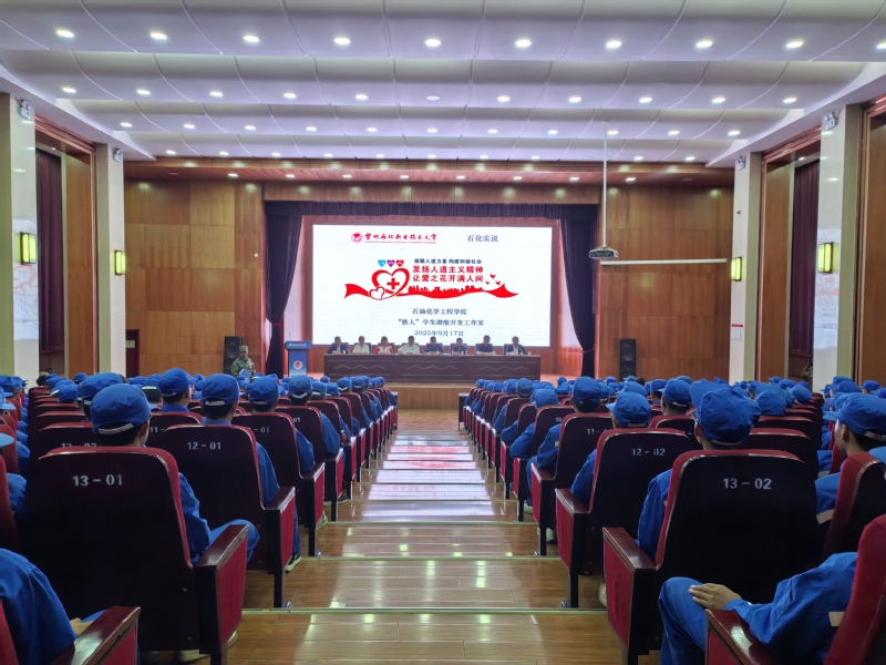 9月17日上午,“博爱陇原 爱心相髓”主题优秀事迹宣讲活动在威尼斯西校区举办。本次活动以弘扬无私奉献、挽救生命的人道主义精神为核心宗旨,通过表彰造血干细胞捐献领域的先进典型,进一步动员社会各界力量积极加入中华骨髓库,为生命救援事业凝聚更多温暖力量。活动现场,甘肃省红十字会代表与石油化学工程学院师生共计300余人齐聚一堂,共同聆听感人故事、传递爱心力量,让“人道、博爱、奉献”的红十字精神在校园中深入人心。