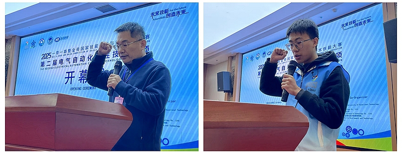 “一带一路”暨金砖国家技能发展国际联盟理事长、金砖国家技能发展与技术创新大赛组委会执委会主席刘振英博士通过视频连线方式发表线上致辞,他指出:“当前全球制造业正迈向工业 4.0 深度转型期,电气自动化作为智能制造的核心支撑,亟需兼具技术实操能力与创新思维的复合型人才。本次大赛设置的赛项模块与国际工业标准高度契合,不仅为金砖国家技能人才搭建了交流平台,更推动了全球自动化技术教育的协同发展,期待选手们以赛为桥,成长为连接各国产业合作的技术纽带。”