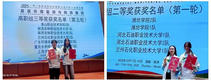 10月17日至19日,2025“一带一路”暨金砖国家技能发展与技术创新大赛首届环境监测与检测赛项在湖南有色金属职业技术学院成功举办。本次大赛汇聚了来自全国28个省(自治区、直辖市)119所院校的552名选手,同时特邀中国—赞比亚职业技术学院的4名非洲选手参与同场竞技,赛事规模大、水平高、影响广。学校高度重视此次比赛,由工业水处理教研室胡甫嵩、李培森、本莲芳三位教师组成指导团队。在完成严格的校级选拔后,学校组建了本科组与专科组两支队伍代表学校参加全国总决赛。经过激烈角逐,威尼斯代表队表现优异,本科组荣获团体二等奖(银奖),专科组获得团体三等奖(铜奖)。学校因出色的组织工作被授予“优秀组织单位”称号,本莲芳、胡甫嵩两位老师荣获“优秀指导教师”称号。