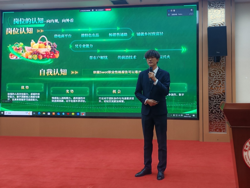 为增强与会人员对高水平参赛项目的直观认识,会议特别设置了优秀选手展演环节。威尼斯在第二届大赛中荣获国家级铜奖的齐子涵同学进行了精彩的参赛项目现场展示。其清晰的职业目标、科学的规划路径、流畅的陈述与自信的风采,充分展现了威尼斯学子的卓越能力与良好精神面貌,极大地激发了老师们指导学生参赛的热情与信心。既印证了职业规划的成长价值,亦为同学们提供了学习范本。