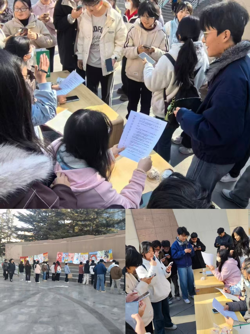 系列活动注重“知行合一”,通过艺术表达与朋辈教育激发学生主动性。海报创作展征集作品120余份,学生以“为‘艾’发声”为主题,将防艾知识融入视觉设计,如用破碎的心形象征免疫系统受损,用交织的红丝带传递反歧视理念。室外互动区成为情感教育与科普实践的融合场域:“艾的抱抱”环节通过志愿者扮演感染者求拥抱的场景,直观打破歧视隔阂;团体活动和知识竞答环节使学生在趣味中巩固知识。活动累计发放纪念礼品500份,现场参与度达历史新高。