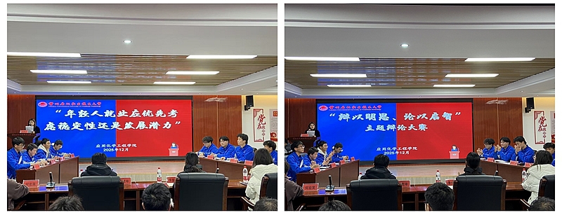 决赛现场氛围热烈非凡,聚焦“年轻人就业应优先考虑稳定性还是发展潜力”这一贴近当代青年成长实际、极具现实意义的辩题,上演了一场精彩绝伦的思想交锋。正方应用化工251班坚定主张“就业应优先考虑稳定性”,从职业规划、生活保障等维度层层递进展开论证;反方应用化工256班则秉持“就业应优先考虑发展潜力”的观点,围绕个人成长、价值实现等方面深入剖析。