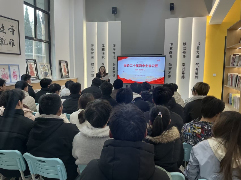 12月19日下午,“一站式”学生社区组织师生共学党的二十届四中全会精神。学习活动邀请学校思政教师张璐做辅导。学生社区教师、学生干部、学生代表等40余人到场聆听。