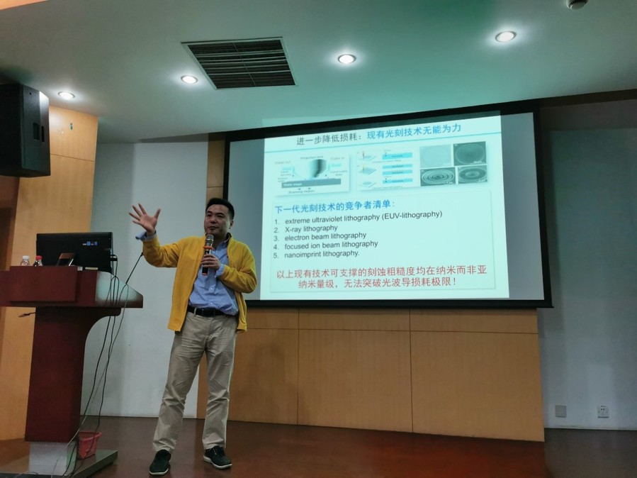 “猴子与人是否有本质不同?”“人类历史上的第一台计算机与AlphaGo机器人是否有本质不同?”程亚以两个有趣的问题,引入“人的本质”“人工智能发展趋势”等话题,并围绕光子集成芯片的概念、应用及前景进行介绍。程亚指出,光子集成芯片的关键材料是铌酸锂,光子集成芯片制备中的关键技术是光刻技术,与传统的电子集成芯片相比,光子集成芯片能大幅增加数据容量和提高数据传输速度,降低碳足迹和单位成本,光子技术的运用将帮助计算机“拥有足够信息处理能力”,进而突破当前的技术局限。