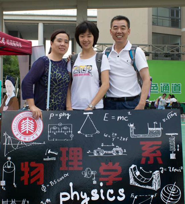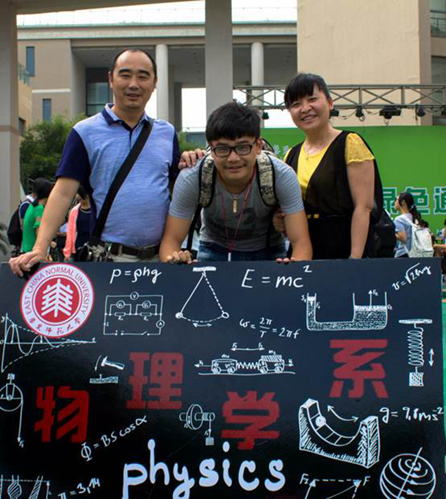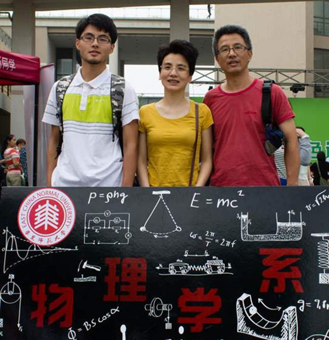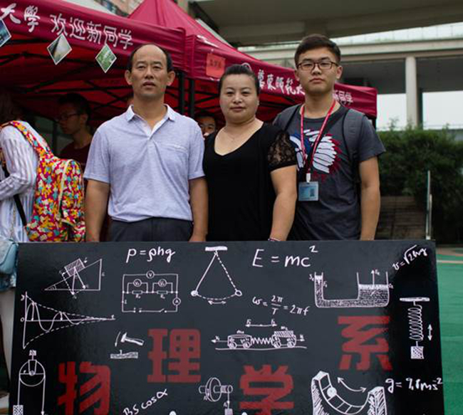 小鲜肉们在物理系特色展板前,与家人,与学导的合影。是大学第一天,人生新起点的留影留念。从此四年,情系物理,愿毕业那天,你会比现在更爱这里。