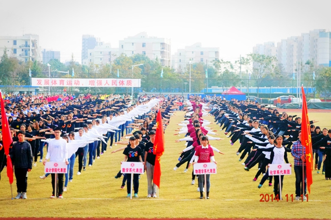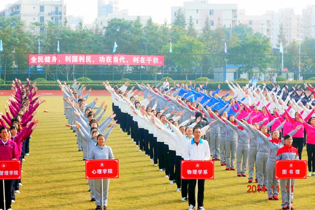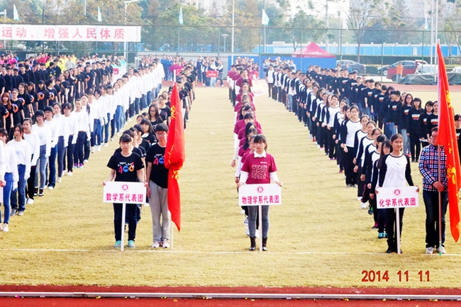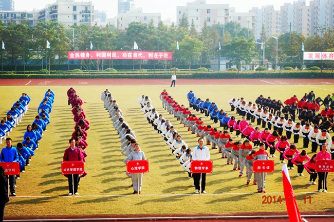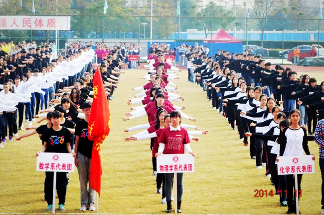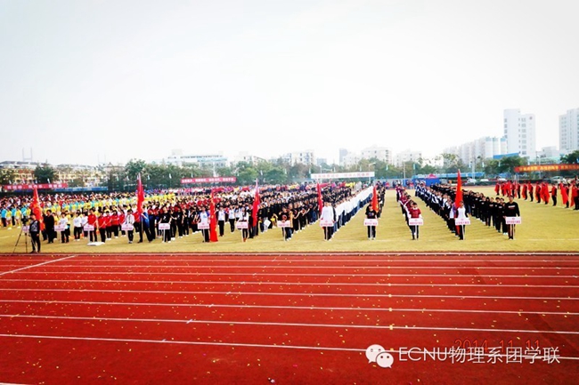2014年11月11日,是十大正规买球的app排行榜2014年秋季运动会的第一天,久违的阳光温柔地洒下,轻抚着每个师大人的笑脸,融入每个师大人的心中。 开幕式,各院系的代表团创意无限的入场方式让人大开眼界。而师生同台竞技的广播操比赛更让感受到体育的魅力。 物理学系的师生更是在开幕式中展现了属于物理人的风采——文能实验室里做学术、武能运动场上展英姿。田径赛场,唯“物”独尊。