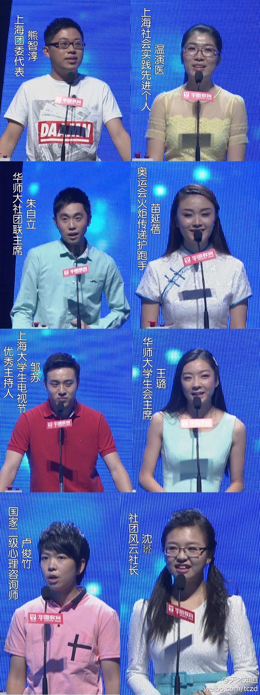入围的8位选手在比赛现场(图片来自天才知道节目官方微博)