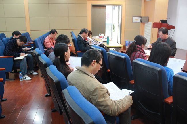 接下来与会代表分为两个小组进行了一个多小时的小组讨论,分别由潘苏东老师与赵振杰老师担任组长,对黄国翔老师所作《2013年物理学系工作报 告》及《系工作量统计细则修改说明》等会议文件和内容进行审议。在小组讨论中,现场气氛热烈融洽,代表们就工作报告和细则修改说明畅所欲言,结合自己平时 的工作阐述对文件的理解、意见及建议,内容涉及教学、科研、学生工作、课程建设、学风建设、考风考纪、教师工作量统计修改方法等各个方面。小组讨论结束 后,与会代表重新集结,由两位组长就小组讨论提出的问题与建议向大会作了汇报。大会表决通过了新的《系(奖金)工作量统计细则》,并补选了学校教代会代表 与系工会委员各一名。