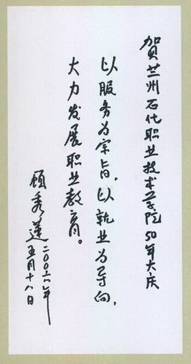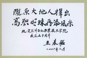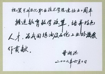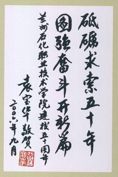 工业和信息化部部长李毅中(时任中国石化集团公司总经理)为学校题词