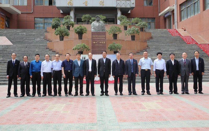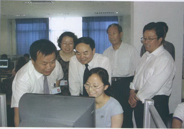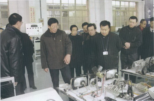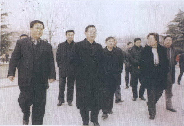 时任甘肃省省长贾志杰(左二)、副省长张吾乐(左六)、中国石化总公司副总经理张万欣(左四)视察学校
