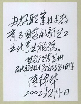 全国人大常委会副委员长顾秀莲的题词 | 原全国政协副主席陈锦华的题词 |