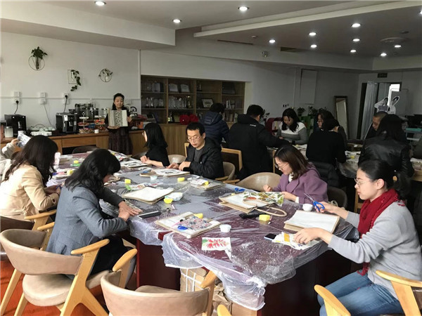 在指导老师的讲解和帮助下,教工们选出了自己最喜爱的图案、花色进行制作,感受手工制作的魅力。制作者可根据自己的喜好、需求,选择不同种类的画面元素,如:花艺元素、中国风、英伦风等。
