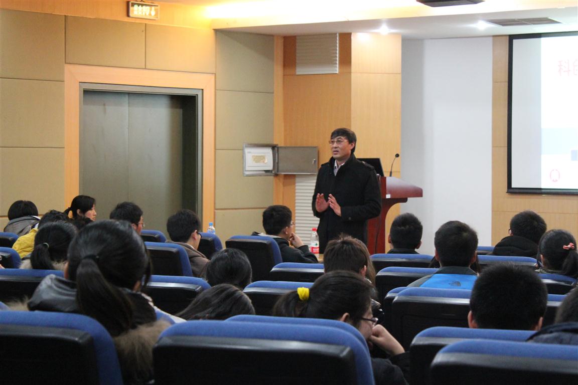 作为主讲人,熊智淳向大家介绍了自己的“挑战杯”之路,分享了自己丰富的科创经验,同时也讲述了他参加“挑战杯”的经历和收获。他说“挑战杯” 让他学会了表达,能快速而且准确的表达出自己的观点和阐述所做的研究;在参加“挑战杯”的过程中提升了自己的能力,包括学习、研究、交际等,收获了课堂以 外的东西;在研究过程中,他学会了持之以恒,学会了坚持,;最重要的是在参加“挑战杯”的过程中他收获了友谊,明白了团队合作的重要性。