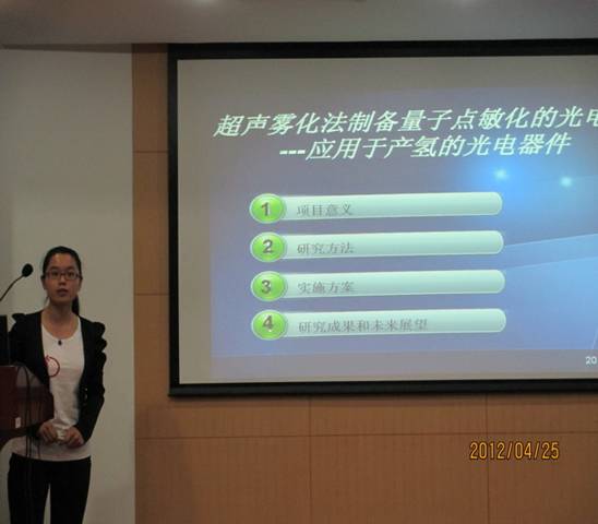 物理系于2012年4月25日在物理楼举行了2012年春季本科生科研训练项目中期汇报及结题答辩。本次汇报答辩会由热心指导本科生科研训练的教师代表毕志毅,宦强,管曙光,王加祥,阮建红,潘丽坤,陈丽清,张三军,张杰老师担任点评指导,分别在3个会场共19个课题组进行项目汇报。各位老师对选手的发 言进行了详尽的点评,并与学生进行了交流,不仅让学生们在学术研究方面有所收获,在整个进行的过程也提出了不少建议。其中老师们提出的:“不要只看重结 果,更要注重过程,要抱着兴趣去研究”建议让同学们印象深刻,老师们也说,在这个实验仪器完善、条件充足的环境下更应该好好珍惜,抓住研究机会。在报告会 结束之后,同学们也留下来自发的进行讨论,学术氛围非常良好,相信这次报告会不但让即将结题的同学们对自己的研究有了全新的认识和反思,对他们以后即将开 展的更长的一段研究之路也会有很大帮助。