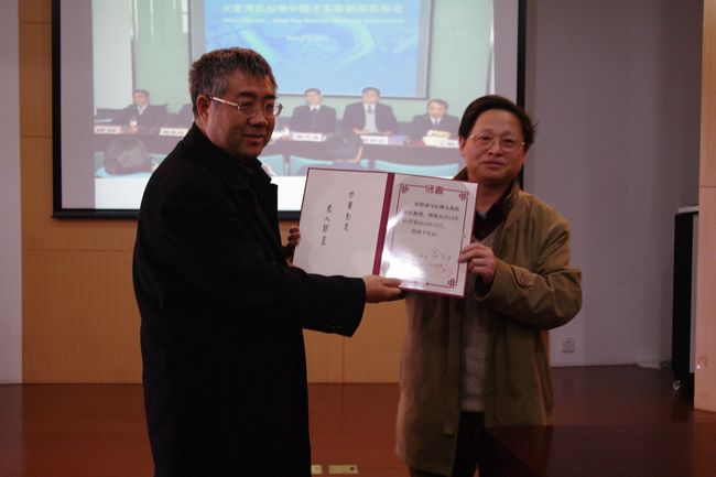 接下来,黄国翔向马红孺教授颁发华东师大兼职教授聘书。随后马红孺教授发言,说很高兴成为华东师大物理系的一员,今后他将在科研和教学方面去做尽量多的具体工作,在物理系的发展中发挥出自己的作用。