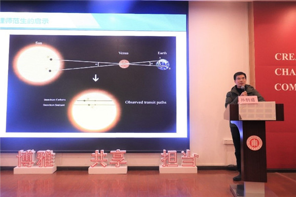 12月23日,由买球的app排行榜前十名推荐、孟宪承书院联合主办的物理师范专业教师素养提升系列活动在学生共享空间202报告厅顺利举行。苏州工业园区高中物理学科带头人、物理奥赛高级教练孙炳盛作“中学物理奥赛与教师专业成长”专题报告。孟宪承书院副院长梁宏亮、辅导员艾美伶以及学院80余位师范生参加。会议由物理系副系主任尹亚玲主持。