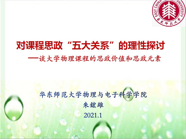 朱鋐雄以《对课程思政“五大关系”的理性探讨》为题,重点从课程思政与思政课程、课程思政与系统集成、课程思政与核心素养、课程思政与学科整合、课程思政与学科知识五种关系入手,探讨了大学物理课程的思政建设,他谈到,大学物理课程的思政价值在于引导学生在掌握物理知识的基础上把握学科结构体系,教师队伍是推进课程思政建设的关键,要对标习总书记提出的“政治要强、情怀要深、思维要新、视野要广、自律要严、人格要正”六项要求,不断提高自身素养和教学水平。