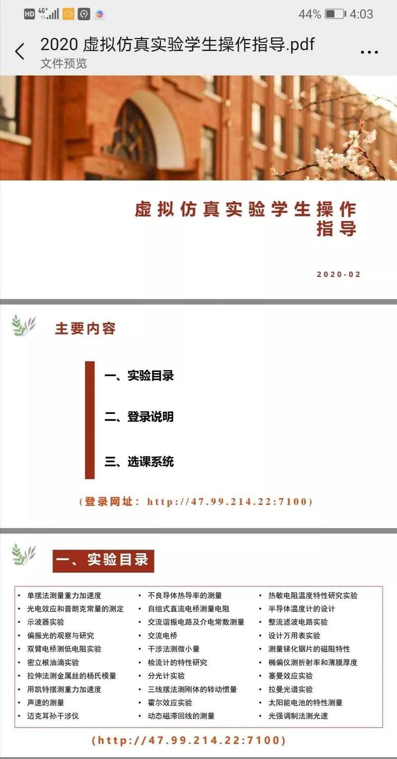 物理实验教学中心教工党支部积极为学生提供在线实验课程,开放虚拟仿真实验平台,同时为同学们制作了《虚拟仿真实验操作》指导ppt。