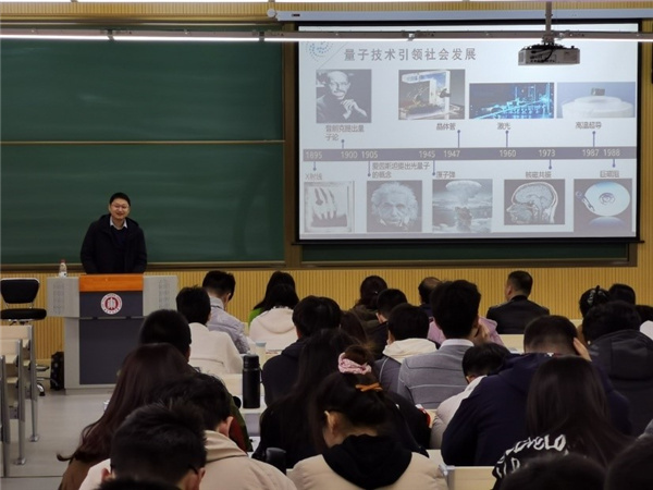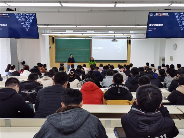 3月3日下午,在物理实验绪论课上,来自国仪量子的陈明博士在四教102教室为学院2018级物理专业本科生作前沿报告《量子计算》。讲座由物理实验教学中心副主任尹亚玲主持,150余名师生来到现场聆听报告。