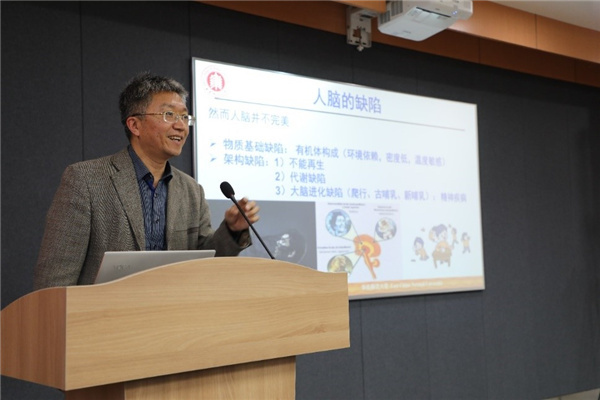 在互动交流环节,参会者就如何在铁电系统中实现时序逻辑、前额叶对人类行为的调控机制、如何让大脑乐于工作、通过人工智能是否会创造出取代人类的“超人”等问题与段纯刚进行了有趣地探讨。