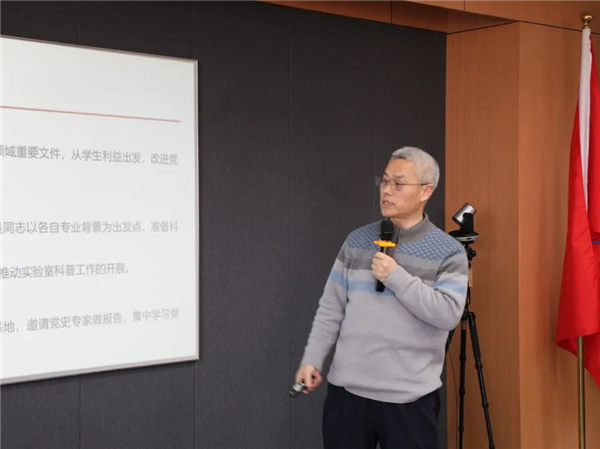 最后,为进一步提升各师生党支部委员党务工作能力、扎实推进党支部标准化规范化建设,李恺为全体支委作《中国共产党党员教育管理工作条例》培训,并为新选任的支部委员作《中国共产党支部工作条例(试行)》培训,特别是围绕支部工作重点、难点进行了深入交流。