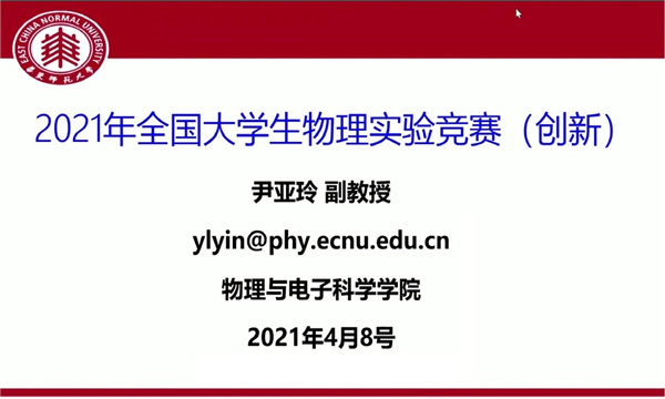 48日晚,物理实验教学中心以在线方式召开2021年全国大学生物理实验竞赛(创新赛)备赛工作启动会。物理实验教学中心主任詹清峰、竞赛指导教师团队及参赛同学与会,启动会由物理实验教学中心副主任尹亚玲主持。
